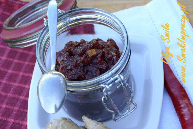Oj tak, coś jest świetny! Zyskał nazwę cościa gdyż zupełnie nie widziałam, do jakiej grupy dań czy przetworów powinnam go zakwalifikować. Biorąc po uwagę słodycz to coś pomiędzy dżemem a marmoladą. Gdy spojrzymy na konsystencję to przypomina bardzo gęsty sos lub oliwkową tapenadę. Jeżeli zastanowimy się nad składem to ten coś ma bardzo wiele wspólnego z chutneyem.