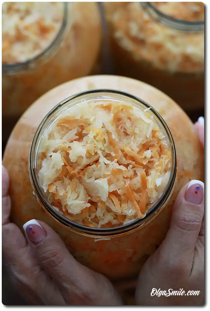 - Kapusta kiszona z marchewką przełożona do słoika musi być mocno ugnieciona i zalana sosem, zakręcona i wstawiona w zimne miejsce, poczeka na zjedzenie w spiżarce.